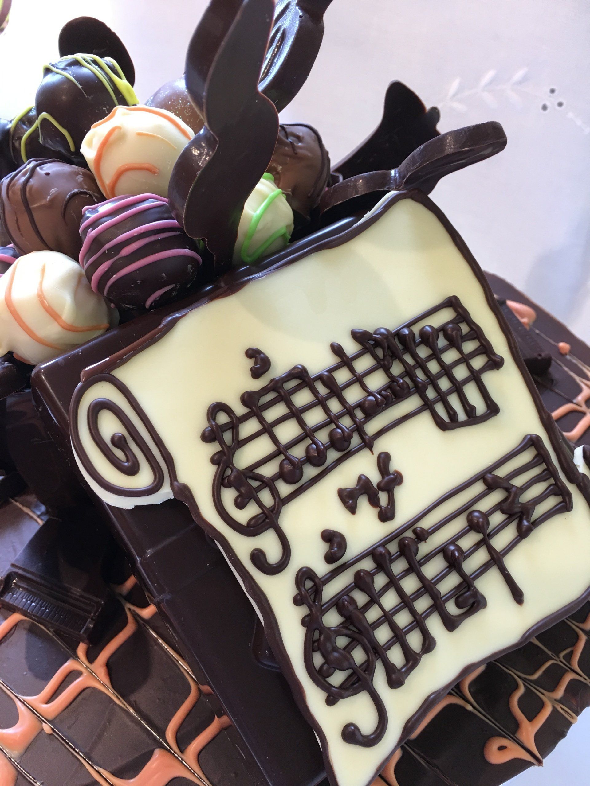 I have created some very special commissions, including a large scroll of music notes with truffles for a symphony orchestra, a 50th Birthday VW Camper Van facade, mountains of cascading truffles for parties and weddings, Chocolate "Taskmaster" Logos for Channel 4 and even 350 half-pint chocolate glasses for Carlsberg!